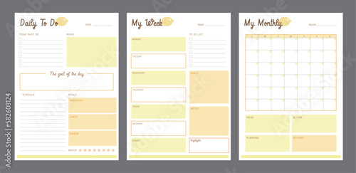 Plánovač kalendář vektorová šablona s roztomilými spícími zvířaty veverka liška ježek králík mýval medvěd sova jelen panda a noční obloha s měsícem, hvězdy design. Organizátor a plán s místem pro poznámky.