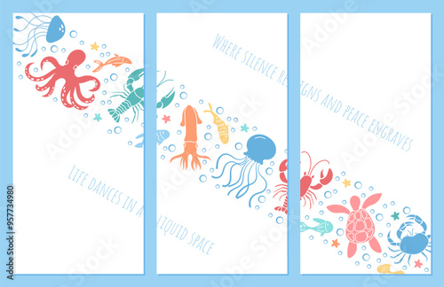 Plánovač vektorové šablony s roztomilými zvířaty delfínů, ryb, krabů, hvězdic a mořských předmětů. Organizátor a plán s místem pro poznámky a seznam úkolů.