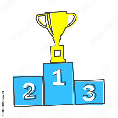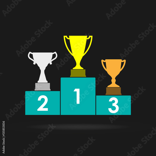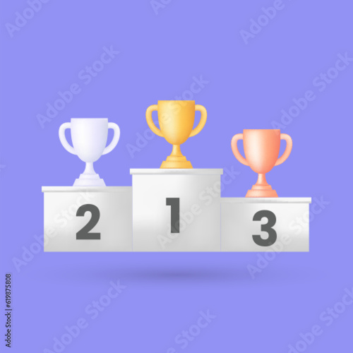 Plánování slovo žebřík s trofej award cup na vrcholu. Vektorové realistické ilustrace. Efektivní strategie podnikatelský plán krok k dosažení cíle koncepce pro web, plakát, banner.