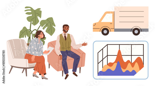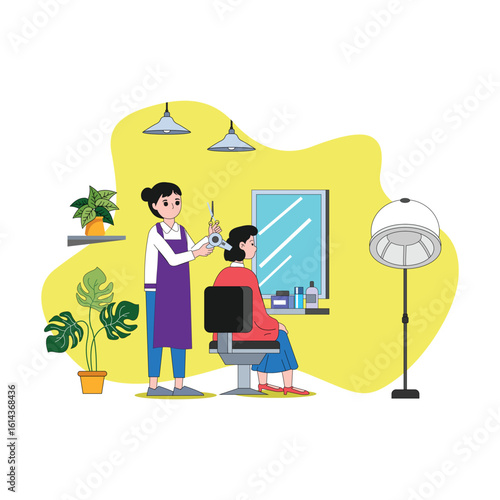 Vektorové ilustrace lékaře mužského plastického chirurga zkoumá jeho pacient žena. Interiér lékařské kliniky. Plochý design.