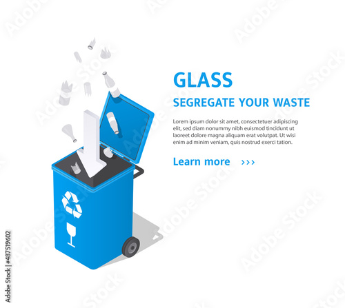 Plastový odpad třídění odpadků recyklovat odpadkový koš vektor. Izometrický ekologický kontejner pro separaci a segregaci odpadu. Oranžová recyklace box izolovaných na bílém pozadí