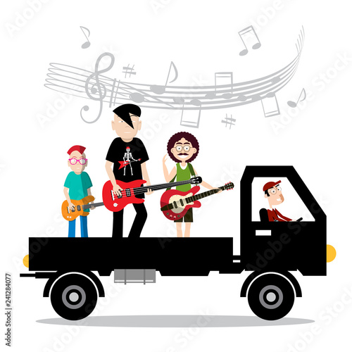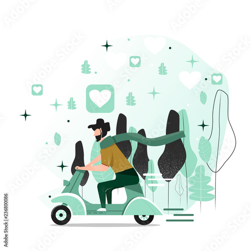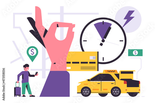 Řidič golfového vozíku sedící v autě, mužské postavy s klubem, vlajkou, vektorovou ilustrací. Golfové vybavení, letní venkovní sportovní aktivity koncept pro web banner, webové stránky atd.