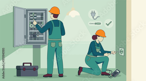 Vektorové ilustrace potrubí montér upevnění unikající vodovodní potrubí s nastavitelným klíčem. Instalatér plochý styl designový prvek.