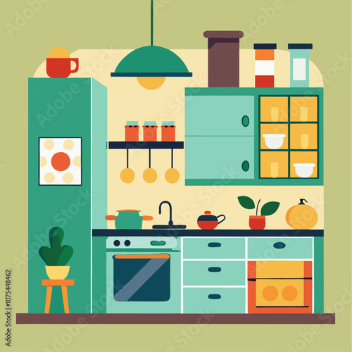Vektorová sada plakátů, bannery s obývacím pokojem, interiér kuchyně. Instalatérské, stěhovací a doručovací služby společnosti ploché designové prvky.
