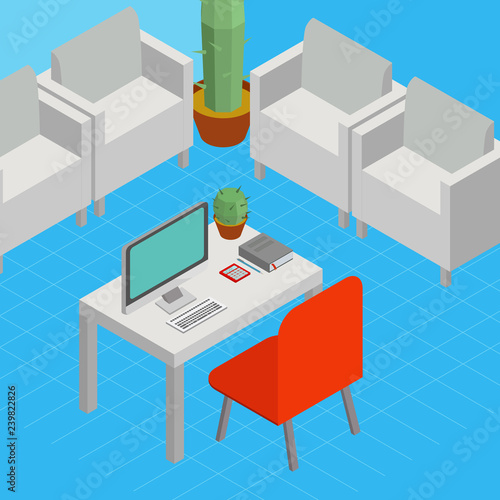 Koncepce instalatérské služby. Vektorový izometrický výřez interiér koupelny s opravářem, který upevňuje netěsnou pračku.