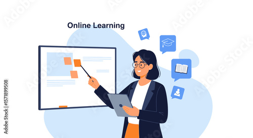Politik, politický kandidát, řečník, který dává řeč, zatímco stojí za pódiem, vektorová plochá ilustrace. Veřejnost, projev volební politiky, setkání s voliči, tisková konference, rozhovor atd.