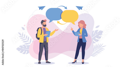 Politická diskuse, spor mezi dvěma ženskými kreslenými postavičkami, vektorová plochá ilustrace izolovaná na bílém pozadí. Politický dialog, diskuse o politice, volební kampaň, politický rozhovor.