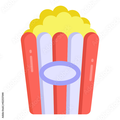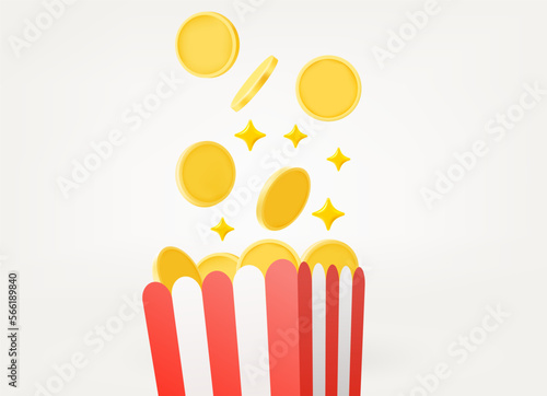 Pop kukuřice box, kbelík nebo cup vektorové ikony. Obalový design izolovaných na bílém pozadí. Pruhovaná lepenková nádoba na křupavé vařené jádro fastfood