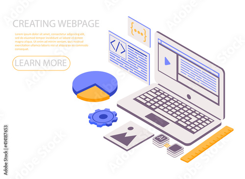 Populární recepty na jídlo, design vstupní stránky, šablona banneru webu, izometrická ilustrace plochého vektoru. Online recepty a kuchařské knihy.