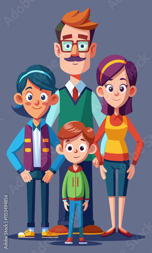 Portrét šťastné rodiny s dětmi cestovatel batohem. Usměvavá matka, otec a děti se usmívají a užívají si venkovní piknik, skauting nebo výletní dobrodružství na dovolené