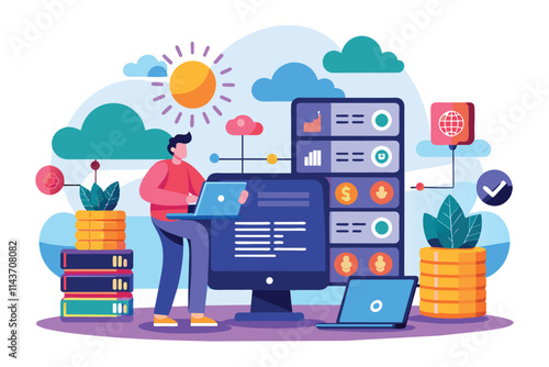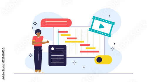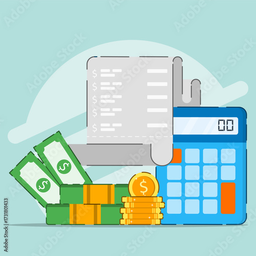 Obrovský platební terminál pos s kreditní kartou a účtenkou, mikro znaky, vektorový plochý design ilustrace. Bezkontaktní platba, koncept převodu peněz pro webový banner, webovou stránku atd.