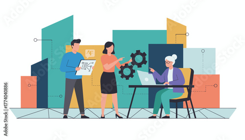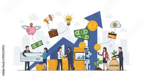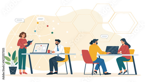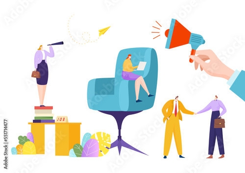 Vektorová ilustrace malých lidí s velkými obálkami, pošťák létající s poštovní taškou doručující poštu. Zaměstnanci pošty, koncepce poštovní doručovací služby pro webový banner, webovou stránku atd.