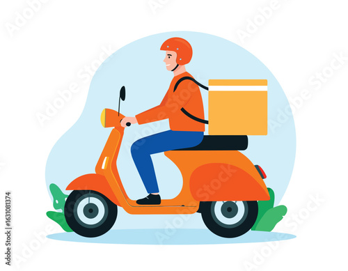 Mladá žena na koloběžce s postbag přes rameno, vektorové ploché ilustrace izolované na bílém pozadí. Poštovní služby, koncept doručování korespondence pro webový banner, webovou stránku atd.