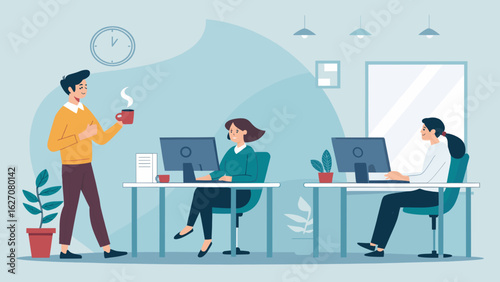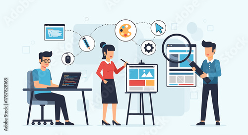Předvolební kampaň koncept vektorové ploché ilustrace. Mužský kandidát prezentující program své budoucí činnosti při mluvení z tribuny před videokamerou. Volební projev, setkání s voliči.