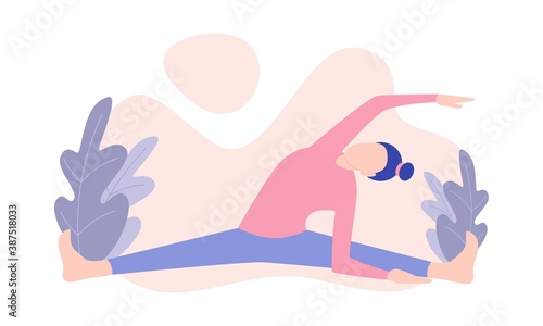 Těhotná žena stojící v kočka-kráva představovat vektorové ikony izolovaných na bílém pozadí dítě narození pozice koncept.