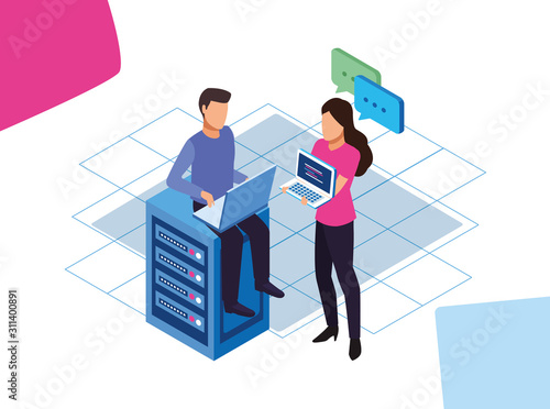 Prezidentské volby exit výsledky hlasování na obrazovce. Muž a žena politik kandidáti vektorové ilustrace v izometrickém stylu. Demokratický volební koncept.