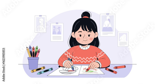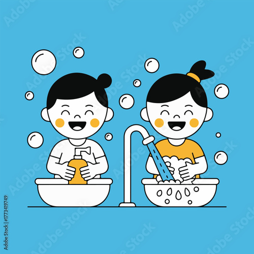 Nedospělý školy dívka a chlapec buidling robot vektorové ikony izolovaných na bílém pozadí.