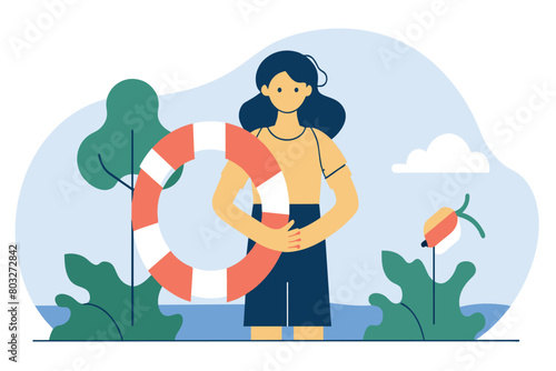 Krásná žena plavec s Bazén míč vektorové ikony izolovaných na bílém pozadí.