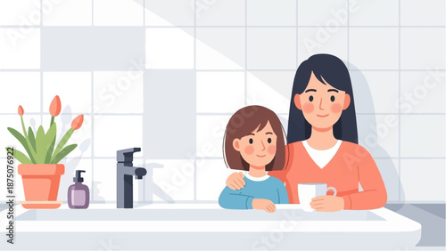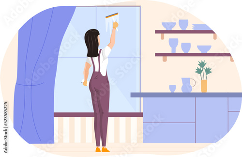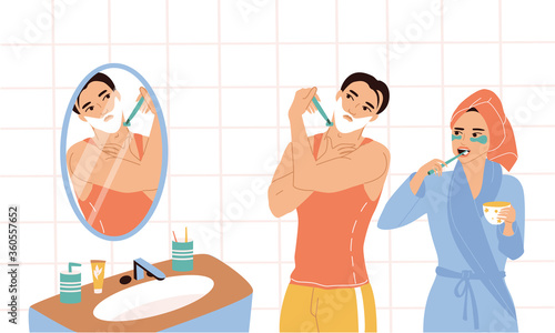 Hezká mladá žena s dokonalým tělem ve sprše v domácí koupelně vektorové ilustrace. Hygiena čistota a kosmetické procedury