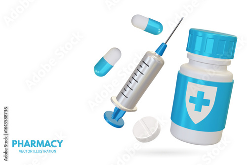 Probiotika pilulky reklamní vektor plakát banner šablony s plastovou láhev a otevřené kapsle. Probiotický doplněk pro udržení dobré rovnováhy bakterií, zlepšení a obnovení střevní flóry.