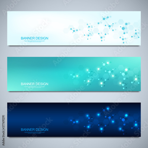 Probiotika vektorové horizontální web banner šablony set s dobrými nebo přátelskými bakteriemi a mikroorganismy pro člověka. Probiotické kmeny bakterií pro zlepšení a obnovení střevní flóry.