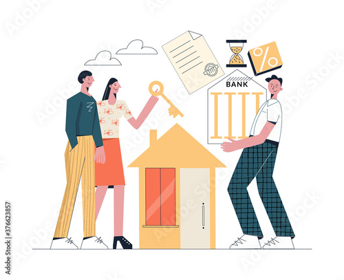 Profesionální stavební inženýři a architekti v helmách diskutující o architektonickém projektu moderních městských budov, ploché vektorové ilustrace. Dům stavební průmysl, stavební vývoj.