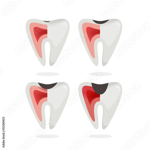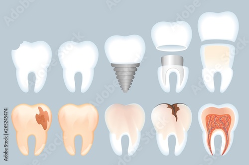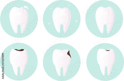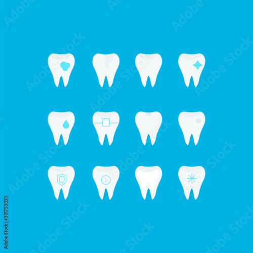 Zubní služby, vektorové izolované ilustrace. Bílý brilantní zdravý zub, ošetření zubů,extrakce zubů a čištění zubů. Koncept zubního lékařství pro plakát, banner, webovou stránku atd.