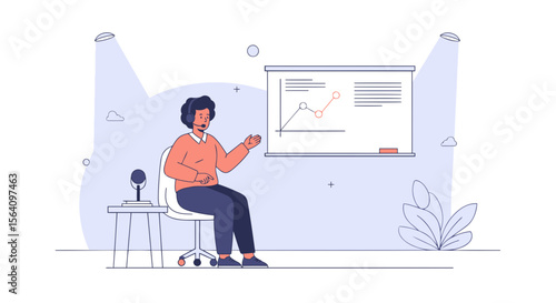 Profesionální designér prezentující detailní skříň nebo skříňové výkresy, ploché vektorové ilustrace. Koncept designu nábytku.
