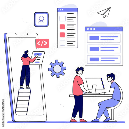 Profesionální designér prezentující detailní skříň nebo skříňové výkresy, ploché vektorové ilustrace. Koncept designu nábytku.