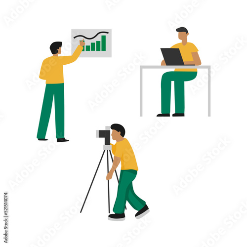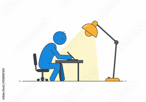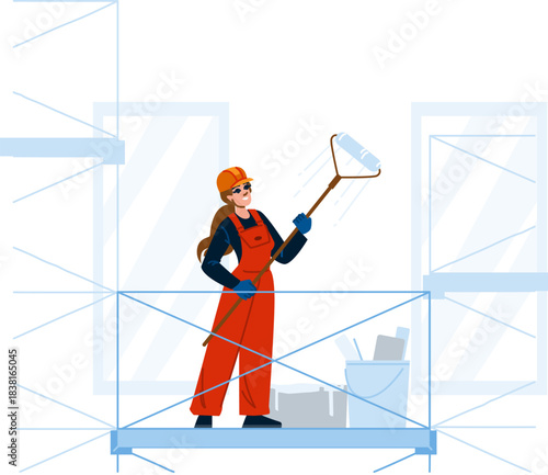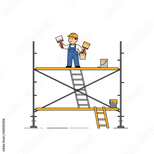 Vektorová ilustrace usmívajícího se elektrikáře stojícího na žebříku a montáže žárovky do zásuvky. Profesionální pracovník plochý designový prvek, ikona izolovaná na bílém pozadí.