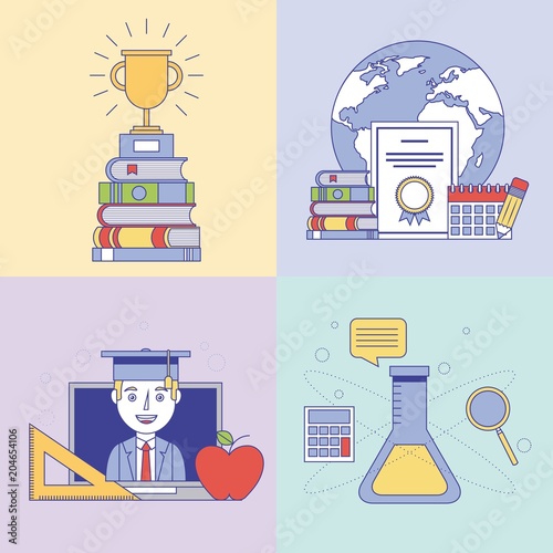 Profesionální programátor vektorový plochý styl designu ilustrace. Ruční žárovka, stolní počítač s lidským mozkem, robotem atd. Koncept vývojáře softwaru pro webový banner, webová stránka.
