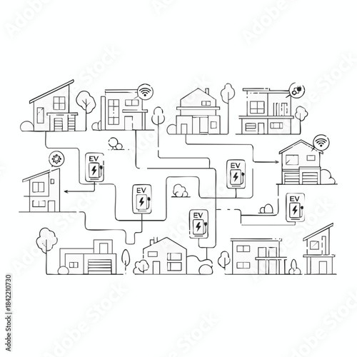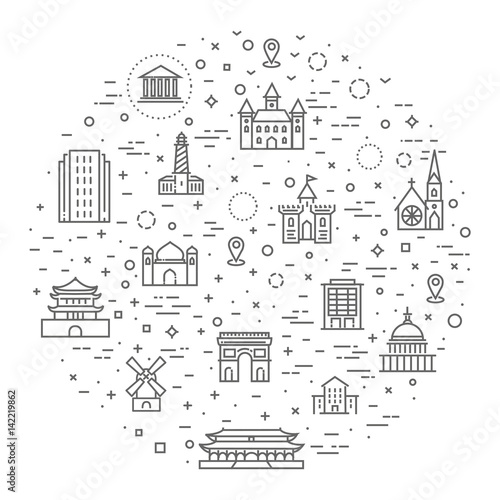 Vektorová ilustrace konceptu nemovitostí a nemovitostí. Moderní tenká linie umění plochý styl designový prvek ve tvaru domu budovy pro webové stránky bannery a tiskovin.