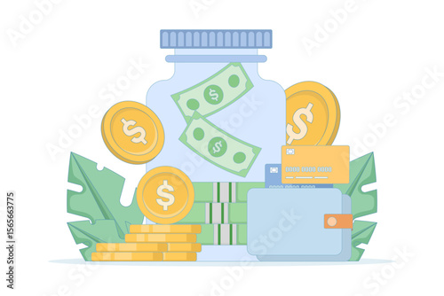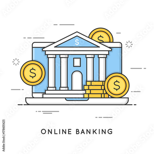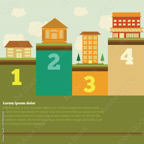 Koncept investice do nemovitostí. Investice do domu a nemovitostí. Budova umístěna na zásobníku mincí. Symboly dolaru a designové prvky.