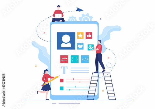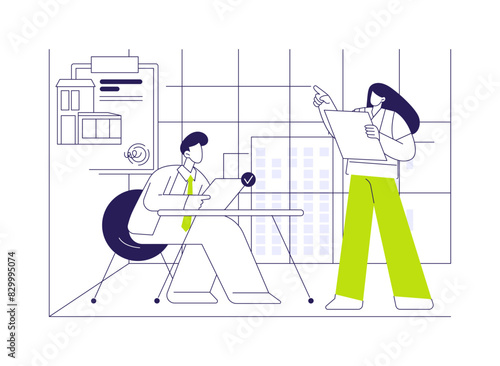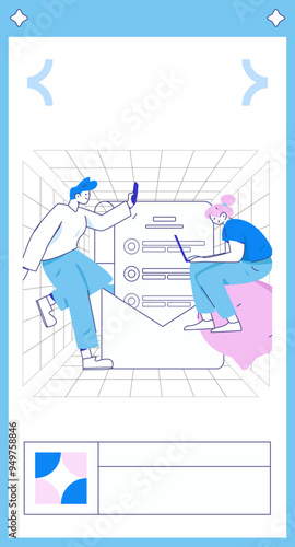 Klady a zápory, výhody a nevýhody zvážení vektorové ilustrace. Špatný a dobrý nápad, plus a mínus, negativní nebo pozitivní názor. Drobní lidé řeší problém s obrovským designem notebooku