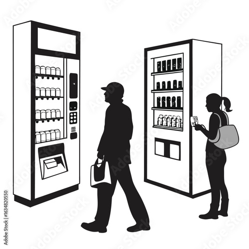 Vektorové ilustrace postižené mladé ženy, která drží jednorázový pohár v protetické paži. Kávovar a Automat na prodej nebo jídlo. Protéza koncept konstrukční prvek v plochém stylu.