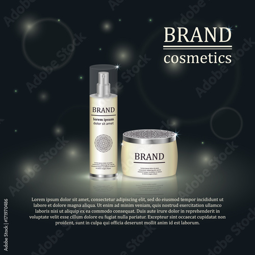 Proteinové produkty reklamní šablona. Vektorové realistické ilustrace syrovátkový protein prášek obal balení design šablony, sklenice proteinový koktejl, kuřecí maso, vejce a silový trénink činka.