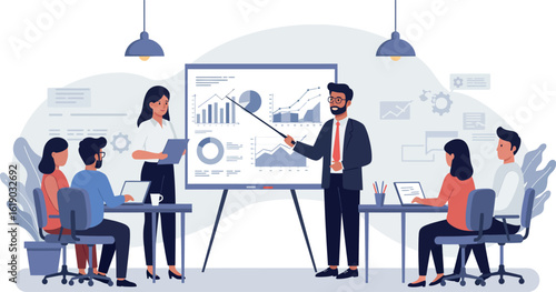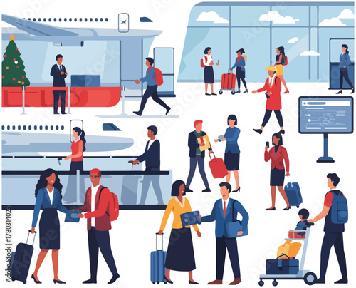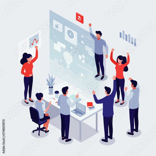 Dav demonstrantů s transparenty a vlajkami, policie s nepokojovými štíty a obušky, ploché vektorové izometrické ilustrace. Sociální protest, hnutí, demonstrace, stávka, nenásilná akce.