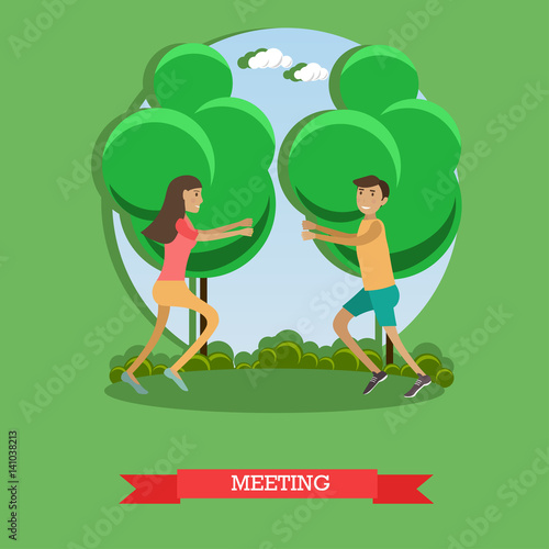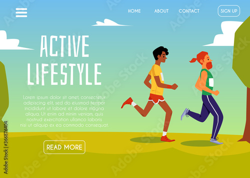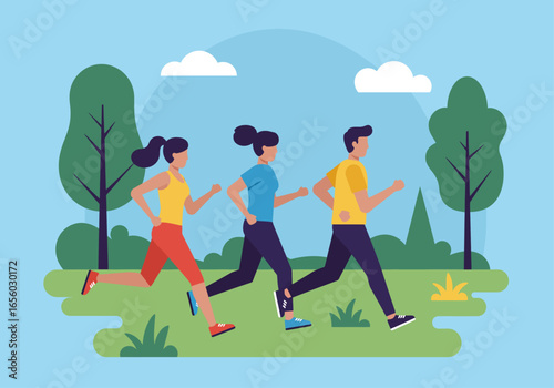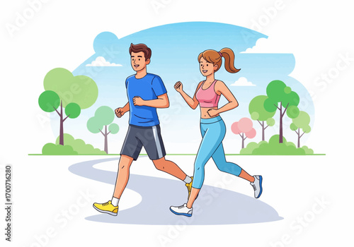 Vektorové ilustrace šťastný zralý pár se těší trávit čas společně. Aktivní starší muž a žena jogging v parku. Ustanovení pro seniory koncepce designový prvek v plochém stylu.