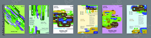 Informace o veřejné dopravě a sledování. GPS navigační mapa s nejrychlejší cestou. Mapa v telefonu. Obrazovky mobilních aplikací. Vektorová šablona banneru pro vývoj webových stránek. Ilustrace designu webových stránek.