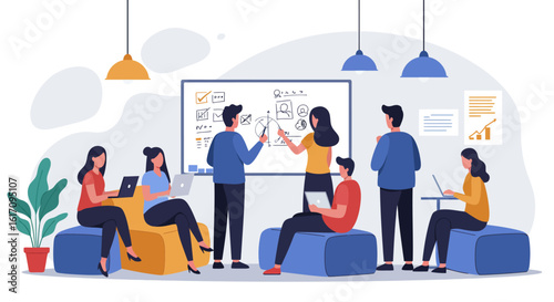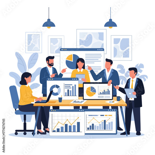 Obchod s elektronikou, vektorové ploché ilustrace. Mužské a ženské postavy prodejci nebo prodavači a zákazníci, kteří si vybírají domácí spotřebiče a elektroniku, jako je pračka, televize, domácí kino.