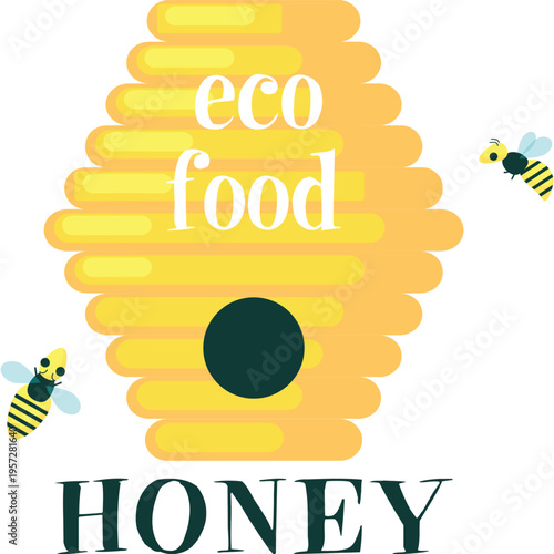 100% čistá ikona medu. Vektorové nálepka, štítek nebo logo s nadpisem textu, včela a květinový design izolovaných na bílém pozadí