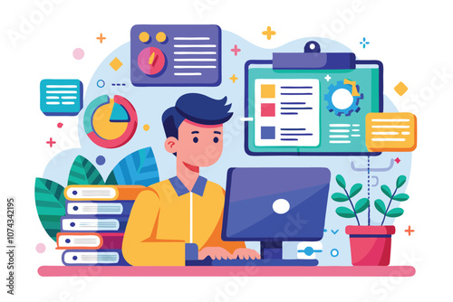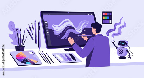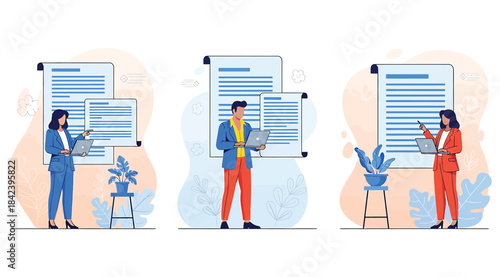 Kvantové počítačové inženýrství vektorové plakát šablona. Skupina lidí fyziků inženýrů pracujících s kvantovým počítačovým čipem, plochý styl designu ilustrace. Kvantový výpočetní výzkum.