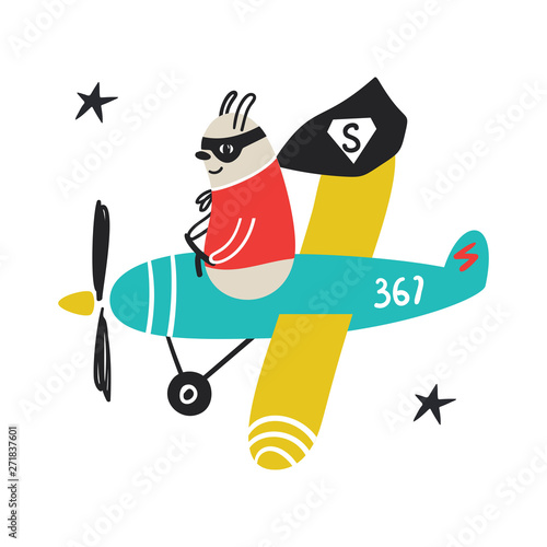 Mýval roztomilý pilot zvíře kreslený vektorové ikony. Funny charakter létání v letadle izolovaných na bílém pozadí. Doodle design pro pohlednici