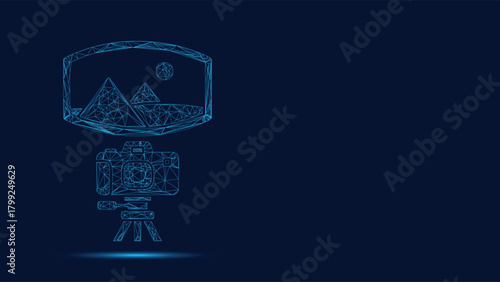 Radioteleskop nízké poly drátěné pletivo vyrobené z bodů, čar a tvarů. Vektorové polygonální umění styl ilustrace. Astronomie věda plakát banner šablona.