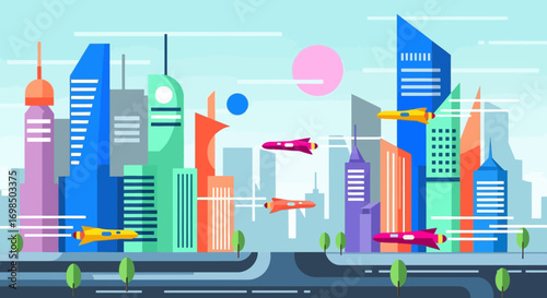Zvyšování sloupcový graf s městskými prvky, městské krajiny. Vektorové ilustrace ve stylu papírového umění. Moderní rozvoj města.