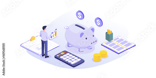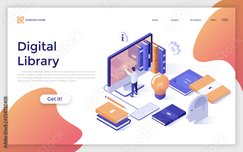 Přečtěte si před spaním, design vstupní stránky, šablona banneru webových stránek, izometrická ilustrace plochého vektoru. Muž čte knihu v posteli v noci. Denní rutina před spaním.