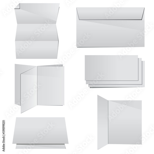 Prázdný skládaný list papíru izolované vektorové sady. Realistická šablona návrhu bílého letáku. Prázdná skládací stránka brožury s kopírovacím prostorem