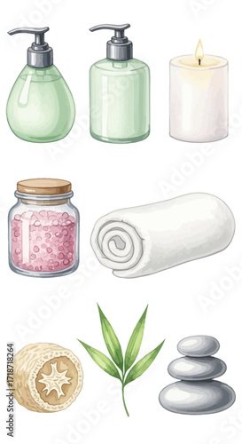 Kokosové ovoce set, vektorové ilustrace izolovaných na bílém pozadí. Realistický celý a poloviční kokos, hranolky, mléko, olej, kosmetika, zelené listy palmy. Organický přírodní produkt.