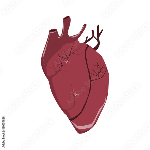 Realistické lidské srdce vektorové ilustrace. 3D kardiologický model izolovaný na bílém pozadí. Červené srdce, vnitřní orgán, ikona anatomie