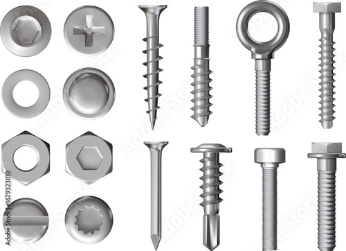 Realistické kovové kliky dveří, knoflíky a zámky, vektorové ilustrace izolované na průhledném pozadí.